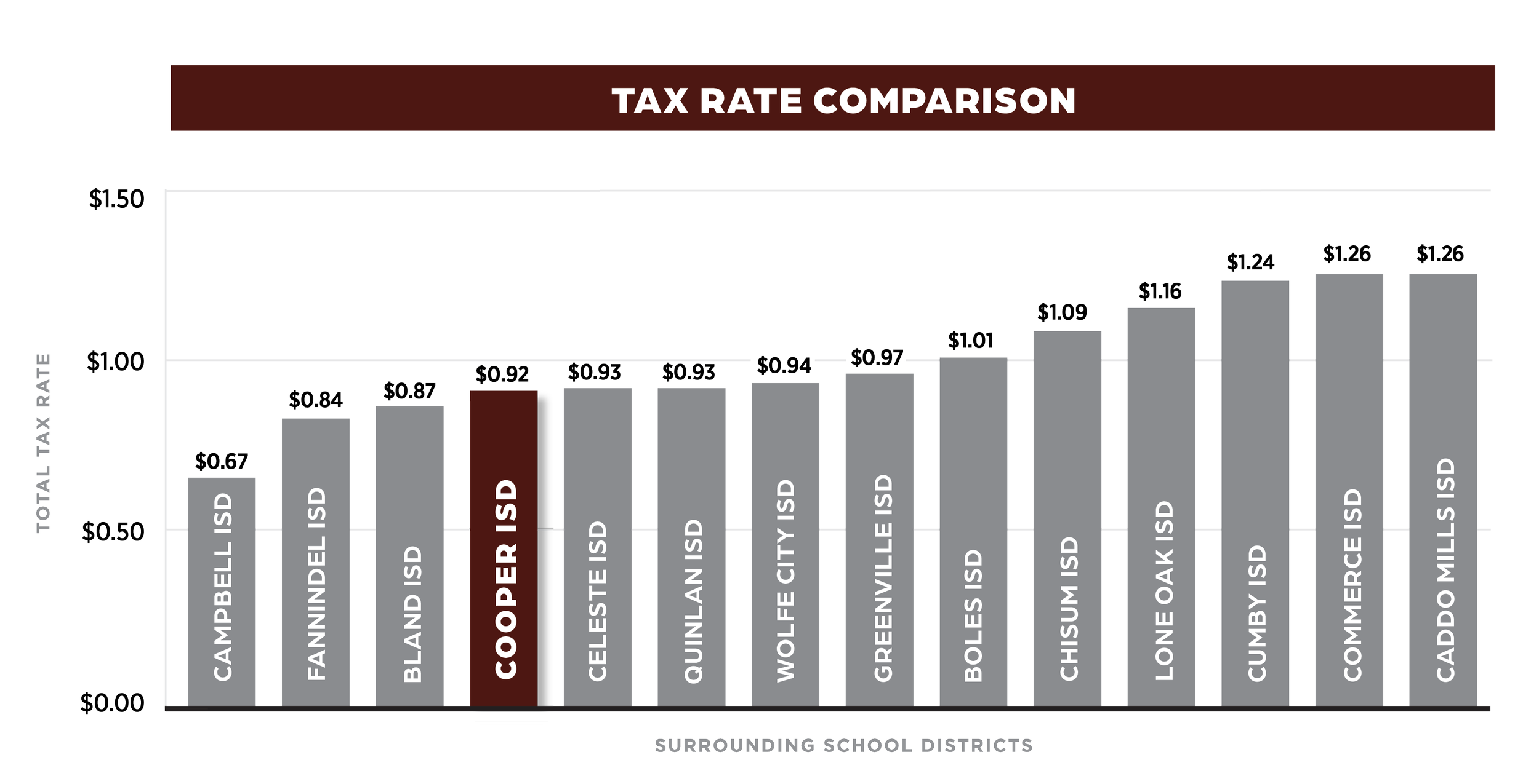 Cooper ISD currently has the fourth lowest tax rate compared to districts in the surrounding area.